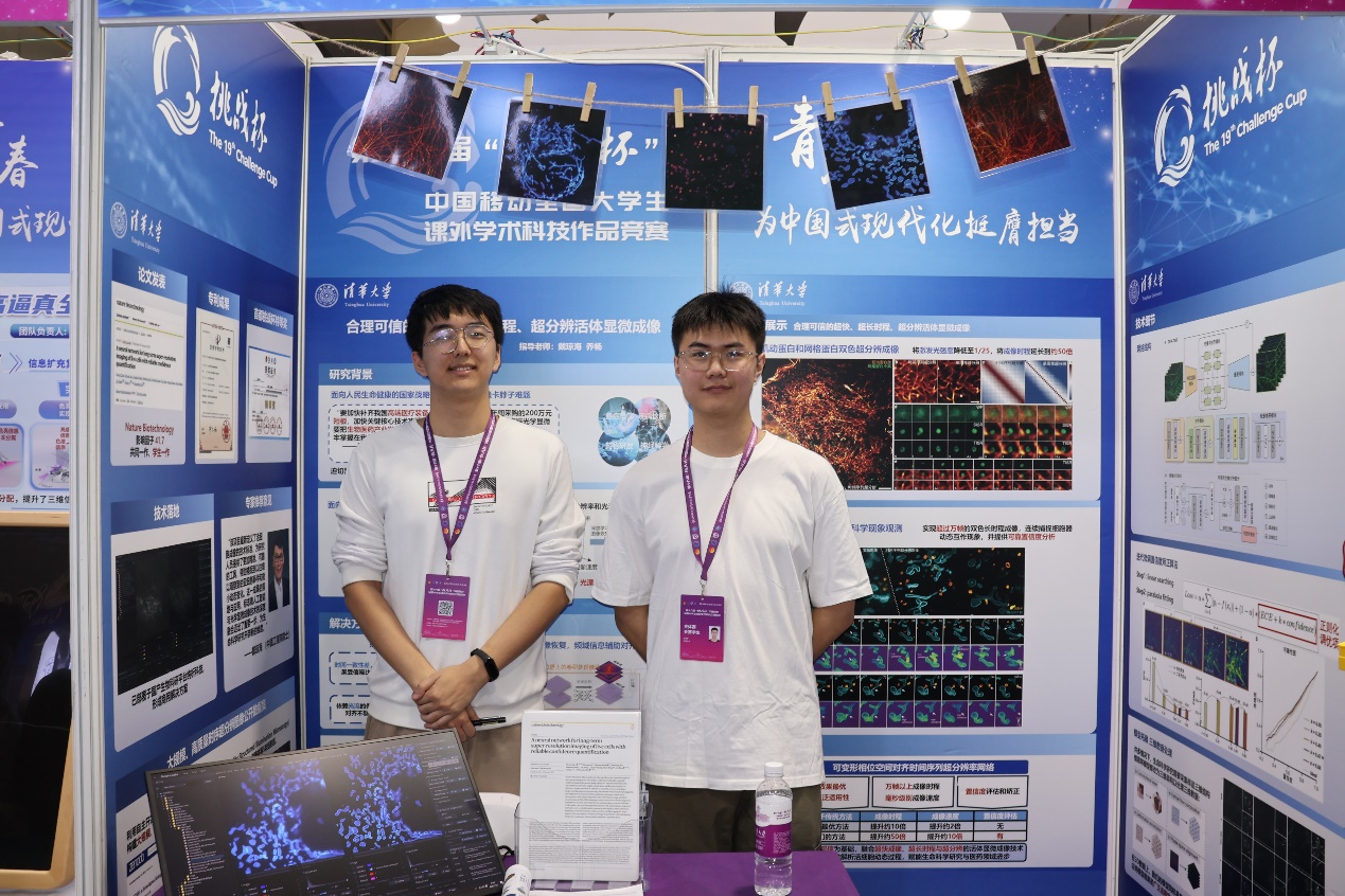 From October 31 to November 3, 2025, the 19th "Challenge Cup" National College Students' Extracurricular Academic Science and Technology Works Competition was held at Nanjing University. During the event, the project "Time-Signal Exploration: Reliable and Trustworthy Ultra-Fast, Ultra-Long-Duration, and Ultra-High-Resolution Microscopic Imaging Technology," led by Department of Automation doctoral students Liu Shuran and Xu Wencong under the supervision of Academician Dai Qionghai, was awarded the Special First Prize in the main competition. This achievement marked Tsinghua University’s successful reclaiming the "Challenge Cup" after six years.