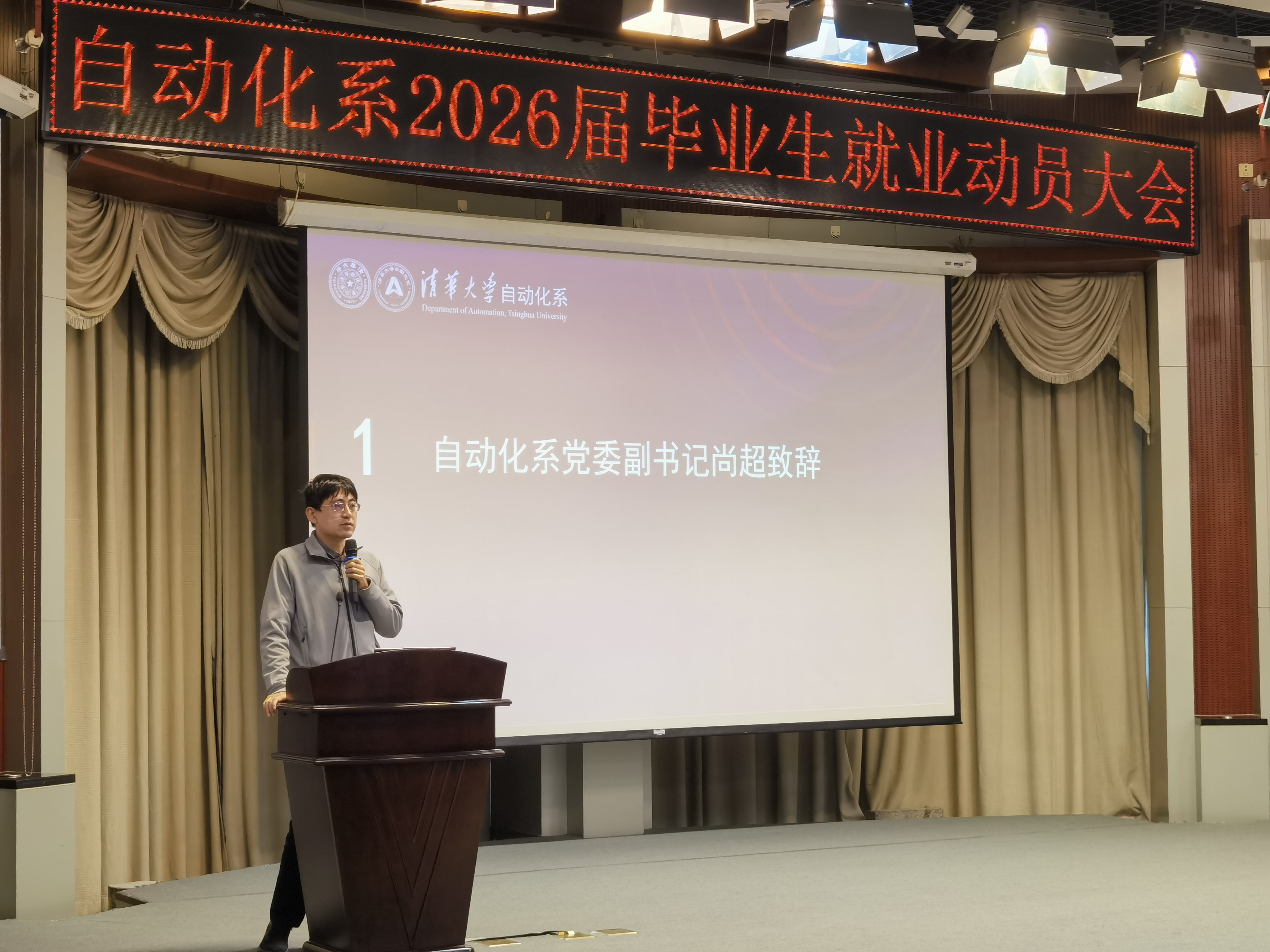会上,尚超发表就业动员讲话。他首先回顾并总结了过去一年自动化系在学生就业工作方面取得的成效,并对2026届毕业生提出了建议与希望。他表示,自动化系高度重视毕业生与博士后的就业工作,在就业工作模式及活动形式上不断探索创新。希望同学们妥善处理好“两对关系”——目标与路径的关系、发挥自身长处与避免路径依赖的关系,打破思维定势与路径依赖,主动、全面地获取各类信息。他建议同学们借鉴“强化学习”的思路,在求职过程中平衡好“探索”与“开发”的关系——既要大胆尝试,拓宽可能性,也要在已有方向上深耕细作,充分发挥自动化专业的优势,立足长远,注重个人发展的可持续性,保持对时代趋势的敏锐洞察力,树立坚定自信,在新的征程上勇毅前行。