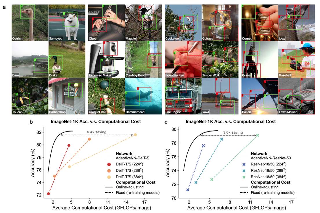 2025年11月6日,清华大学自动化系宋士吉、黄高团队在《自然·机器智能》(Nature Machine Intelligence)上发表了论文《Emulating human-like adaptive vision for efficient and flexible machine visual perception》 (模拟人类自适应视觉,实现高效灵活的机器视觉感知)。该研究提出了 AdaptiveNN 架构,通过借鉴人类“主动自适应视觉”机制,将视觉感知建模为由粗到精的最优序贯决策问题:逐步定位关键区域、累积多次注视信息,并在信息足够完成任务时主动终止感知过程。具体的,该研究通过结合表征学习与自奖励强化学习,建立了基于离散-连续混合优化问题的AdaptiveNN模型,并给出了高效的端到端求解方法。在涵盖9类视觉任务的实验中,AdaptiveNN 在保持精度的同时实现了最高28倍的推理效率提升,并且具有在线动态调整推理开销以适配算力约束的能力。此外,其基于注视路径的推理机制具有更好的人类可理解性,为研究者更好地理解视觉模型的行为提供了更多的线索。论文进一步验证了 AdaptiveNN 的感知行为在多项测试中与人类视觉系统相类似,为未来探索和理解人类视觉认知机制提供了新的视角和研究工具。