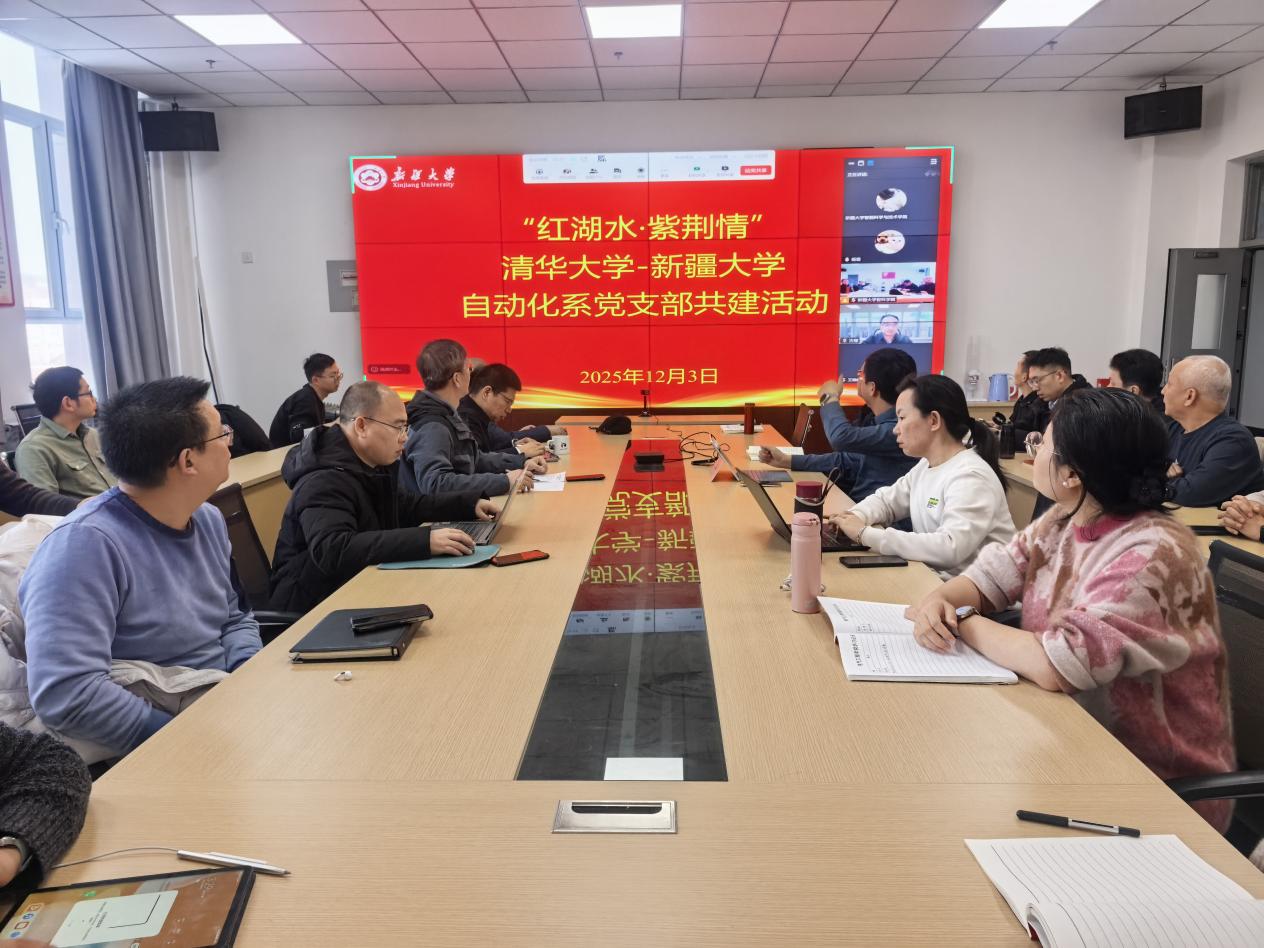 为深入学习贯彻党的二十届四中全会精神,深刻领会全会对推进中国式现代化作出的重大部署,2025年12月3日,清华大学自动化系导航与控制研究所党支部与新疆大学智能科学与技术学院自动化系党支部以“筑牢中华民族共同体意识,大力培养创新人才,加快建设科技强国”为主题,通过线上线下相结合的方式,联合开展“红湖水·紫荆情”党支部共建活动。会议现场清华大学自动化系党委书记古槿与新疆大学智能科学与技术学院党委书记张宏立...